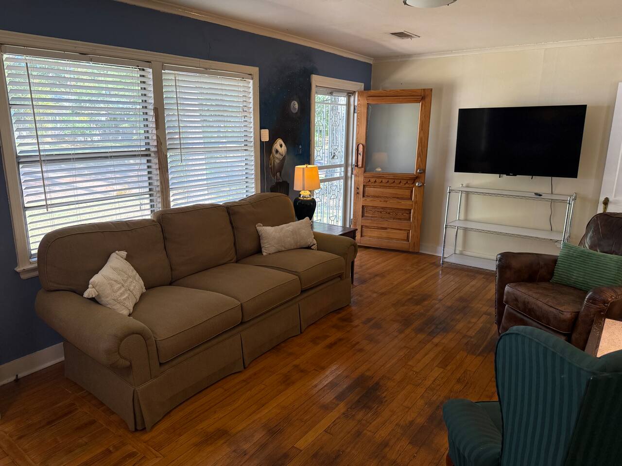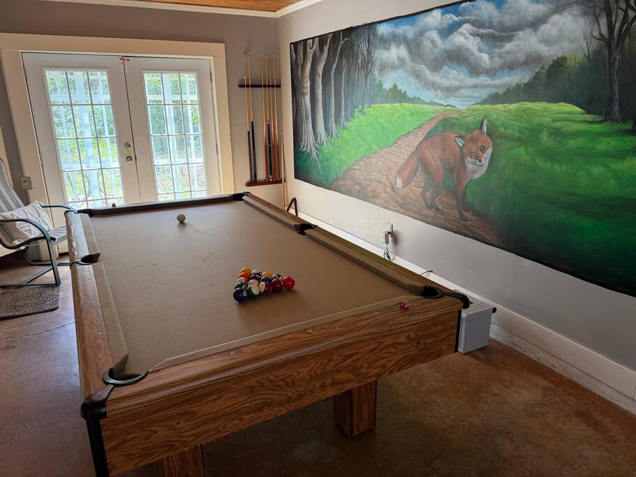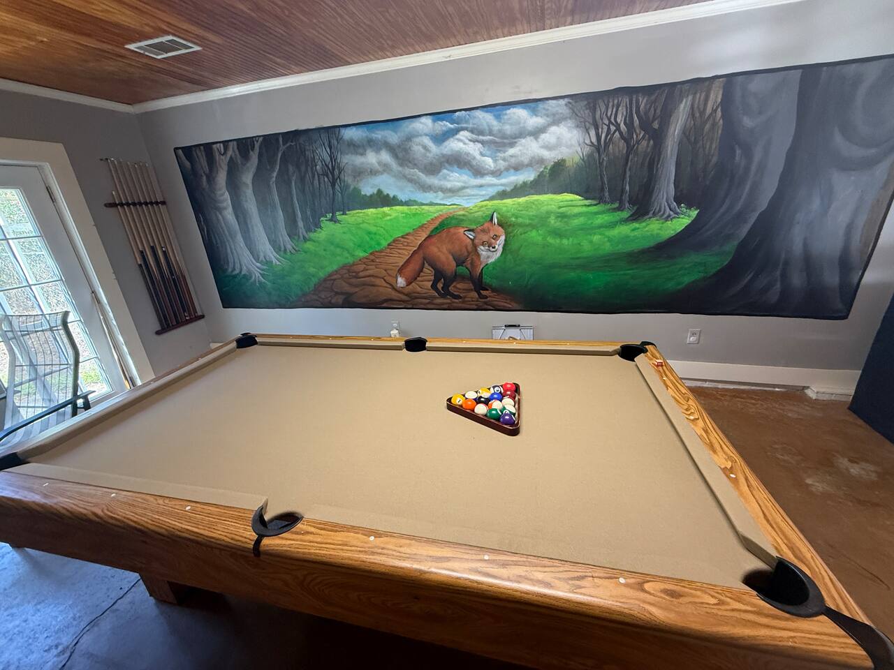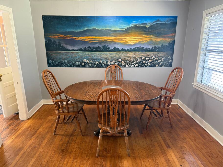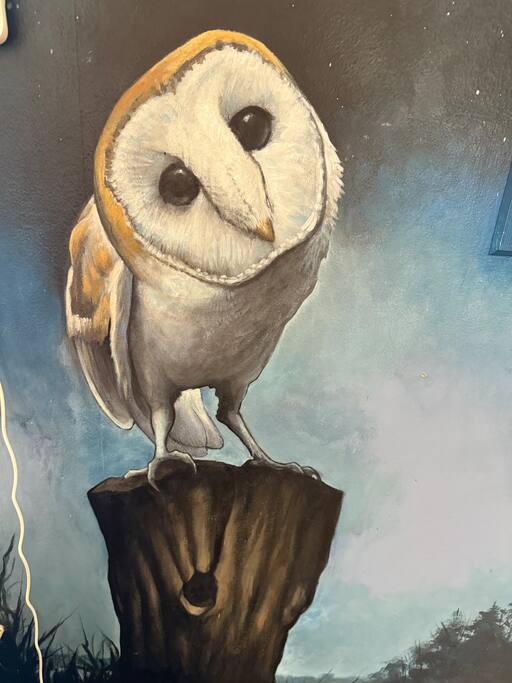 The Mural House is located on a quiet, calm street in North Fondren - close to St. Richard's Church and Banner Hall. This unique house is close to everything, making it easy to plan your visit and get around town! In addition to the three bedrooms, you will find multiple murals throughout the house featuring local wildlife and scenes - a barred owl, a fox, a field, and more.