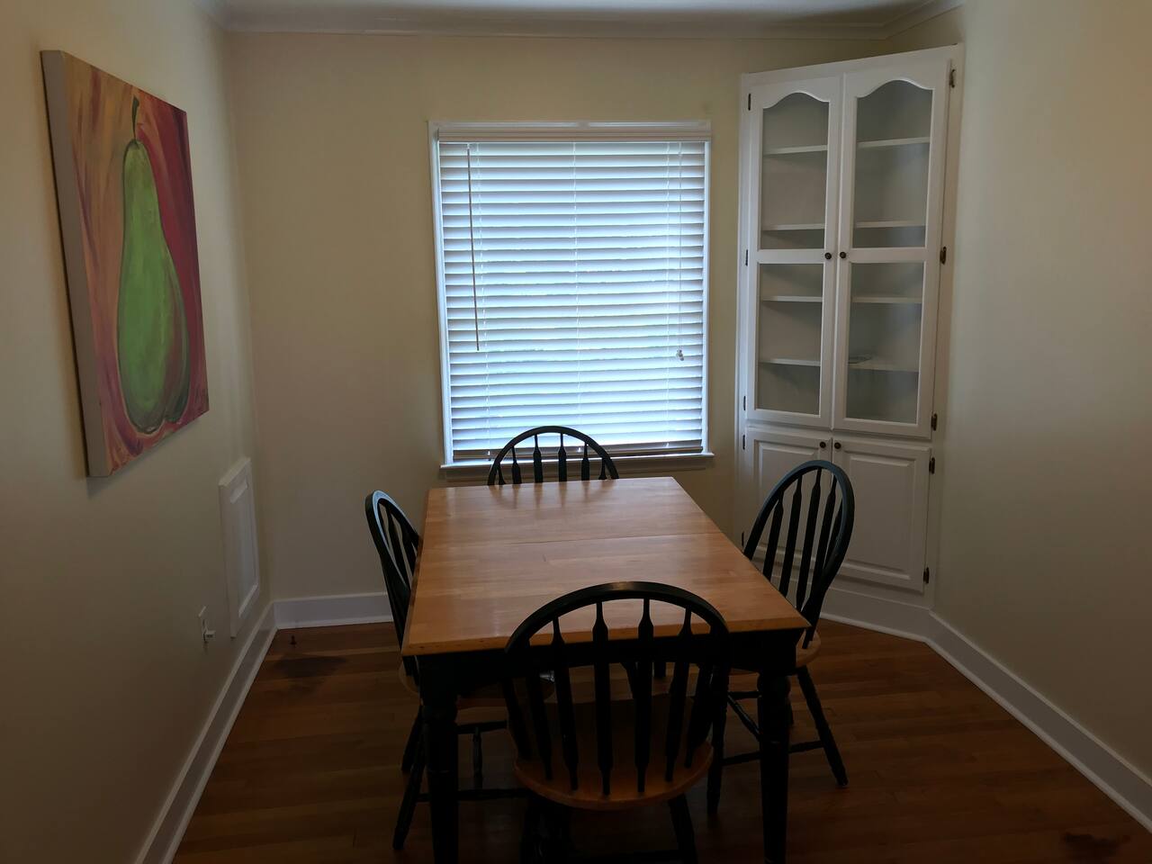 This cozy 2-bedroom home features a welcoming living area with a plush sofa and a soft fabric recliner, perfect for relaxing after a day in the city. Enjoy your favorite shows on the flatscreen TV, powered by Apple TV and an easy-to-use touch remote. The dining area comfortably seats six, making it great for meals or game nights.